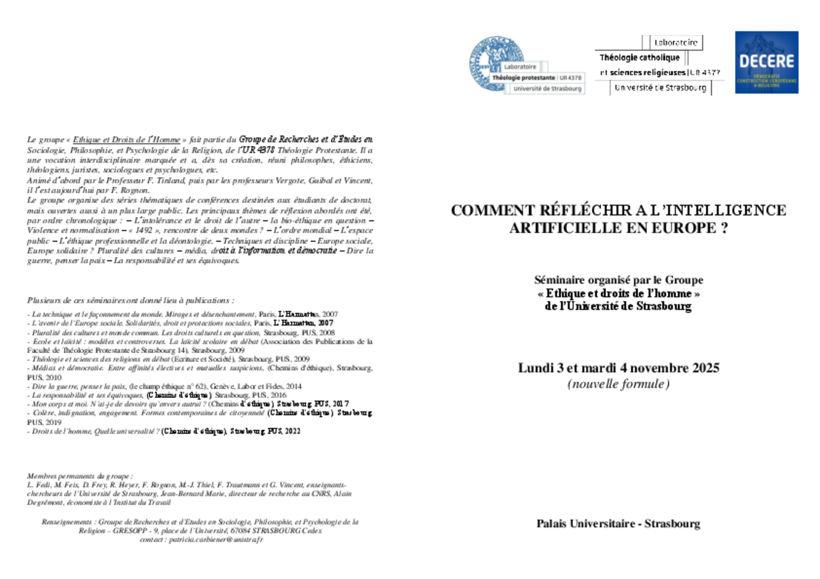 Administrativement rattaché à la Faculté des Sciences sociales de l'Université de Strasbourg, le Centre Européen d'Enseignement et de Recherche en Éthique (CEERÉ) est le support du Master Éthique de l'Université de Strasbourg. Il est aussi un lieu de recherche où sont organisé des séminaires, des colloques et des journées d'études dans le domaine de l'éthique.
